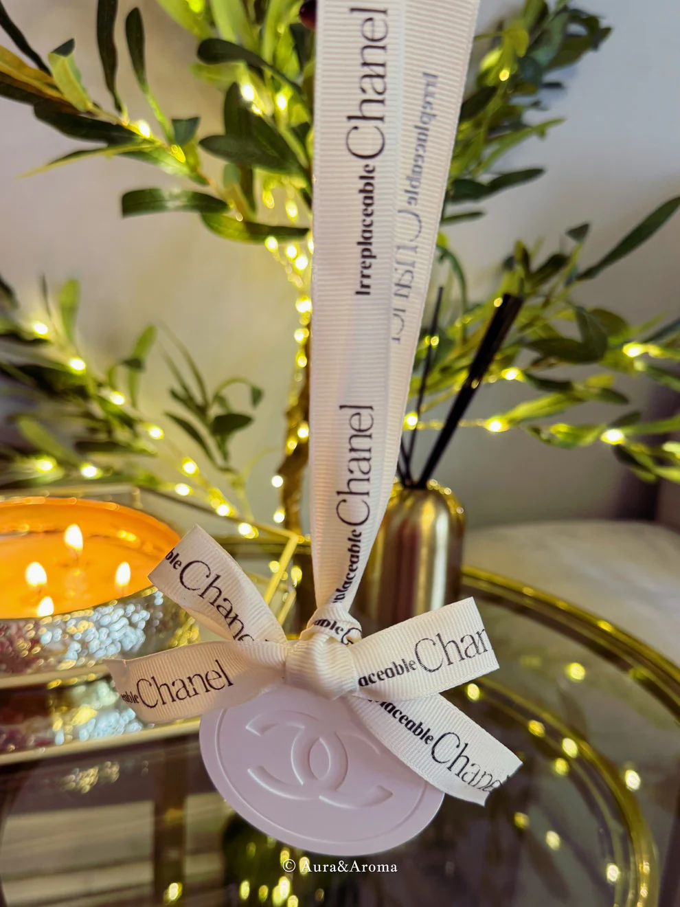 Chanel inspired car and home hanging air freshener perfect gift present anniversary and birthday – white ribbon